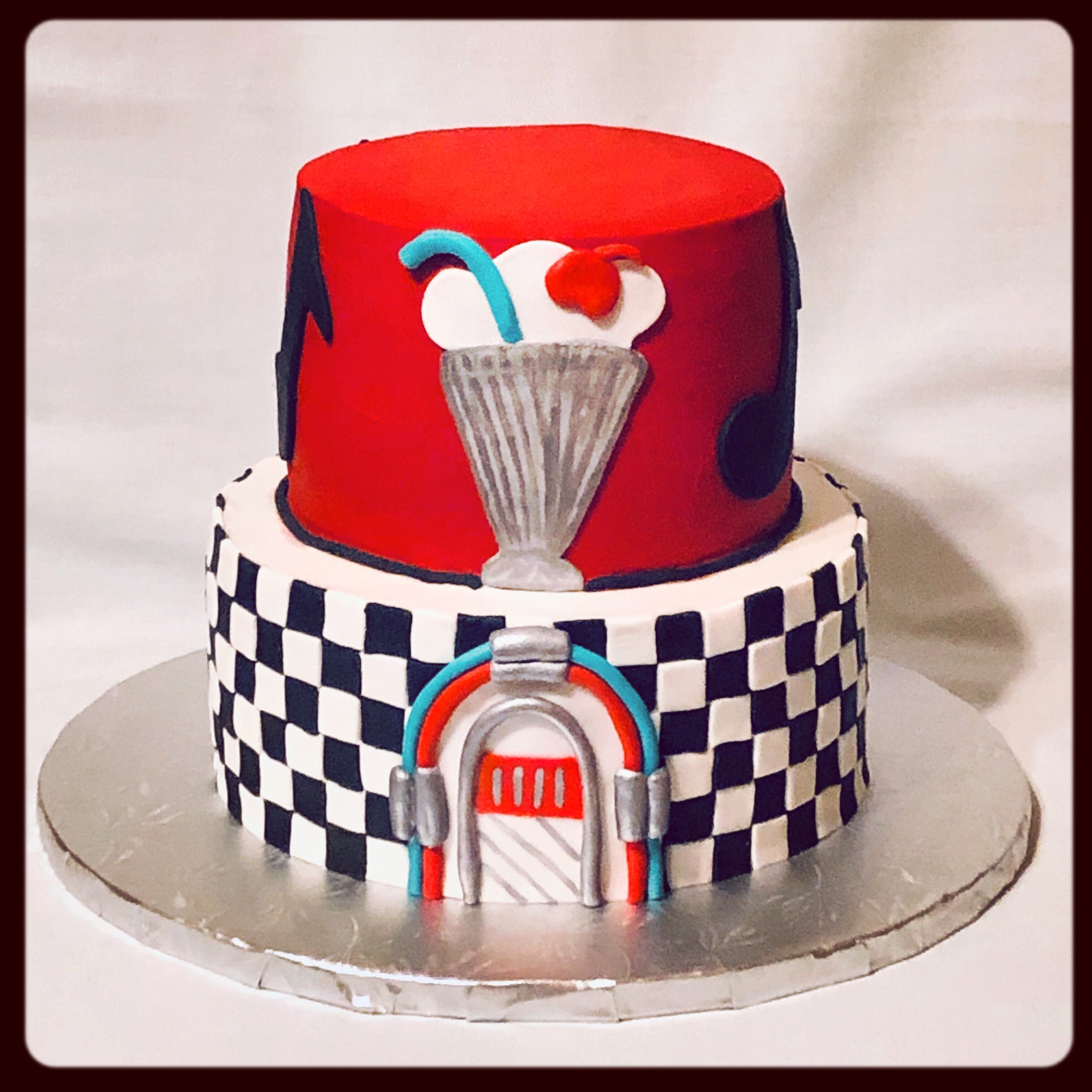 I absolutely love how this 50’s diner themed birthday cake came out!! Vanilla cake with vanilla buttercream and fondant accents, including the checkered bottom and diner door, was perfect for the party theme. Thank you so much for the opportunity Shannon!! #LikealotCakes #cakerlife #jesslife #50sdinercake
