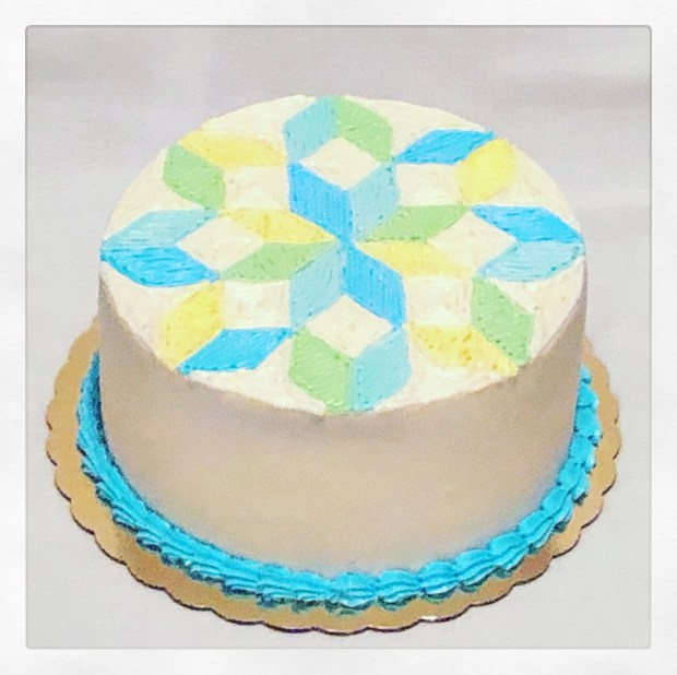 We may not be able to stitch a quilt, but we can ‘cake’ a quilt. This hand-drawn pattern in buttercream, atop a lemon cake, with lemon curd filling and vanilla buttercream frosting, was the perfect birthday surprise for Megan’s mom. Thanks so much for the opportunity! #LikealotCakes #cakerlife #jesslife #quiltcake