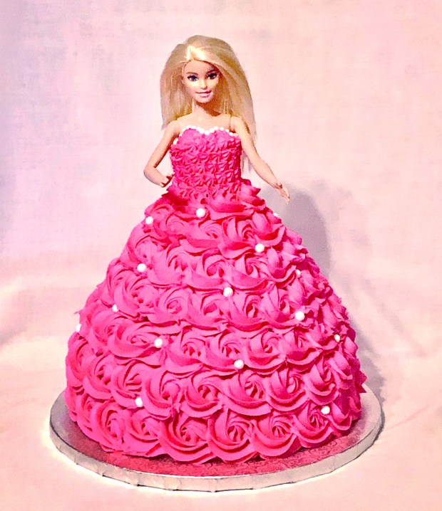 The classic Barbie cake. I loved making this hot pink rosette cake for sweet Annalise with one of her favorite Barbie dolls. Vanilla cake with vanilla buttercream. Thanks for the opportunity Jenna and Paul! #LikealotCakes #cakerlife #jesslife #Barbiecake