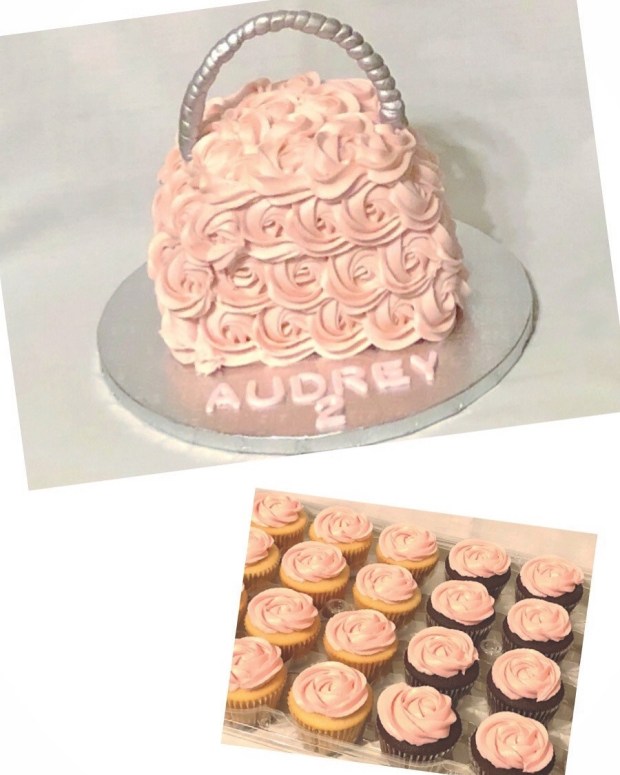 What a cute little purse cake for sweet Audrey’s 2nd birthday. Vanilla cake with pale pink rosettes in vanilla buttercream, fondant purse handle, and matching chocolate and vanilla cupcakes. Thanks for the opportunity Erin! #LikealotCakes #cakerlife #jesslife #pursecake
