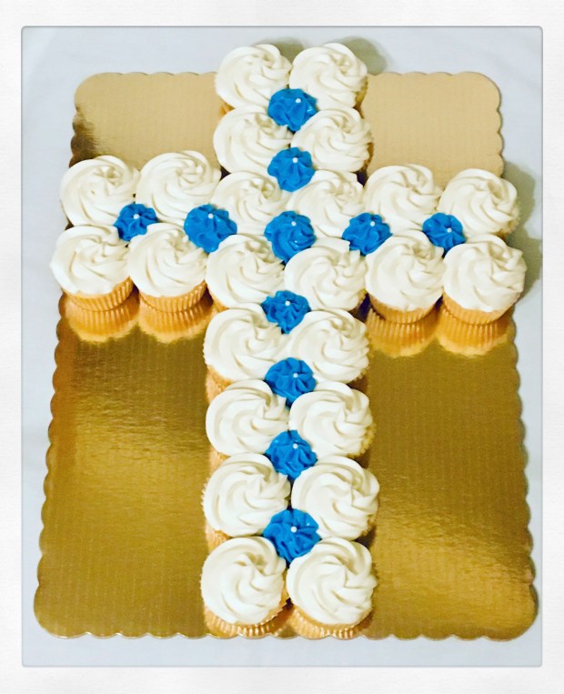 The end of June, Jackson and his cousin made their first holy communion. They celebrated with matching cupcake cross cakes, made with vanilla cupcakes and vanilla buttercream. Thanks for the opportunity, Joanna! #LikealotCakes #cakerlife #jesslife #cupcakes #firstcommunion