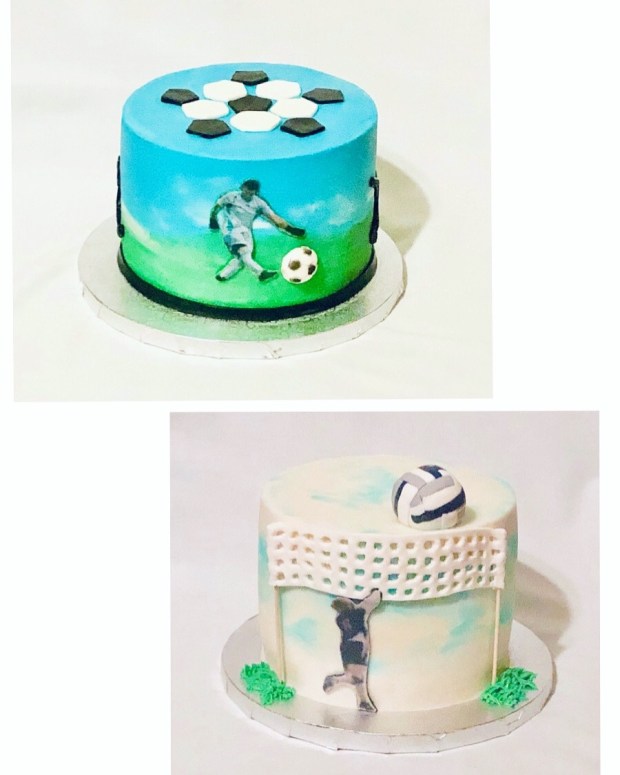 Sports rules! Twins Wills and Vivian celebrated their 18th birthday with their own personalized cakes. Will plays varsity soccer and Vivian, varsity volleyball, so it was only fitting that their cakes reflected them as individuals. Thanks for allowing me artistic freedom with these, Shelby! I hope they loved them! Wills had chocolate cake with chocolate buttercream filling and Vivian had lemon cake with strawberry filling. Look closely…the edible image of the player…is them! #LikealotCakes #cakerlife #jesslife #soccercake #volleyballcake #18thbirthday