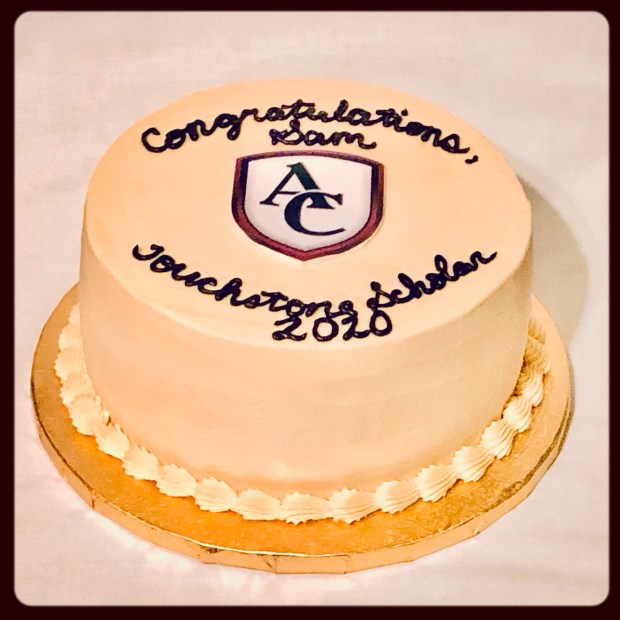 The ceremonies may be canceled, but the celebrations are still on!! Congratulations to Sam on his highest honor in his high school, the Touchstone Scholar. Snickerdoodle cake with salted caramel buttercream and edible sugar image school logo. Thanks for the opportunity Pam! Hope it was enjoyed! #LikealotCakes #cakerlife #jesslife #touchstonescholar #curleyhighschool