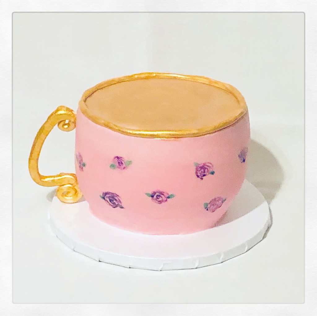Would you like a cup of tea? Since we celebrated my daughter’s birthday at high tea yesterday, she requested a teacup cake to share with her friend. Chocolate cake with vanilla buttercream, fondant gold accents, and hand painted flowers. Happy birthday, Isabella! #LikealotCakes #cakerlife #jesslife #teacupcake