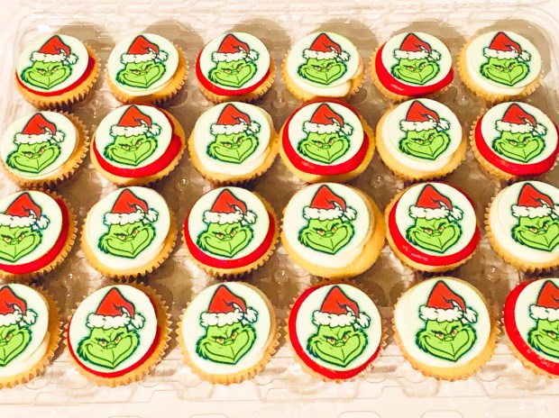 One last Grinch order for Christmas. Ashleigh added some vanilla cupcakes, with vanilla buttercream, and fondant edible image toppers to her Grinch cookies for celebrating Christmas. Hope they were a hit! #LikealotCakes #cakerlife #jesslife #Grinch #grinchcupcakes