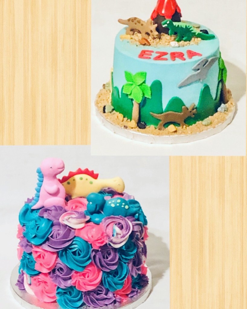 It’s family fun! Sweet Ezra loves dinosaurs and because she is very ‘monkey see monkey do’, his little sister Evelyn does now too. So for their 3rd and 1st birthdays, we did these fun cakes. Vanilla funfetti cakes with vanilla buttercream and fondant accents. Thanks for the opportunity Julie & Josh. I hope the kids loved them! #LikealotCakes #cakerlife #jesslife #dinosaurcakes #rawr