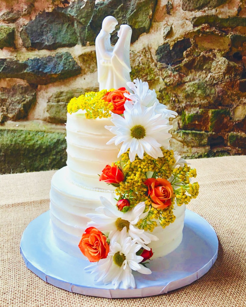 Oh wedding season!! We loved adding these beautiful fresh flowers (leftover from the bride’s bouquet) to this simple, yet elegant wedding cake. Two tiers of snickerdoodle cake, with cinnamon swirl buttercream filling, and vanilla buttercream frosting. Bride Hannah even used her parents original cake topper from their wedding. Such a perfect cake for the rustic farm wedding our bride worked so hard to make happen. Thanks, Hannah and Jacob. Congratulations on your wedding day! #LikealotCakes #cakerlife #jesslife #weddingcake #rusticwedding #freshflowers #snickerdoodlecake #cinnamonswirlbuttercream #sallysbakingaddiction
