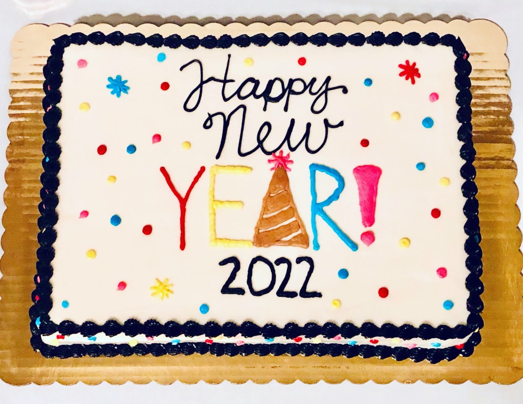 Celebrating the change of the fiscal year. Welcome 2022. Vanilla cake with vanilla buttercream. Thanks Neil. I hope your office enjoyed it. Thanks for coordinating Erin! #LikealotCakes #cakerlife #jesslife #fiscalnewyear #sheetcake