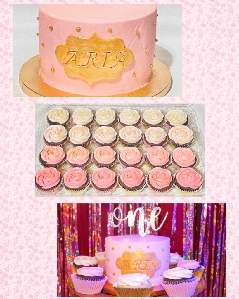 First birthdays are so fun! Sweet Aria had a beautiful pink party to celebrate turning One. Vanilla smash cake with vanilla buttercream and a mix of vanilla and chocolate pink ombré cupcakes with vanilla buttercream rosettes and edible gold glitter. Thanks for the opportunity Cindy! I hope your guests and your adorable birthday girl loved it! #LikealotCakes #cakerlife #jesslife #firstbirthday #smashcake