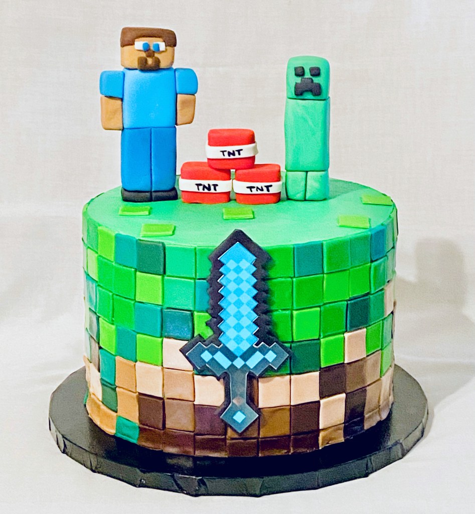 Tile by tile…Minecraft stole the show this weekend with Mikey and his friends. Chocolate and vanilla cakes, vanilla buttercream, with fondant tiles and figures. Thanks for letting us make your kids’ cake fantasies become reality, Corinne. 2 of 3 kids’ masterpieces, in the books. First the Crabby Patty, now the Minecraft, next up is… well, you’ll have to check back next weekend 😊. #LikealotCakes #cakerlife #jesslife #Minecraft #kidscakes
