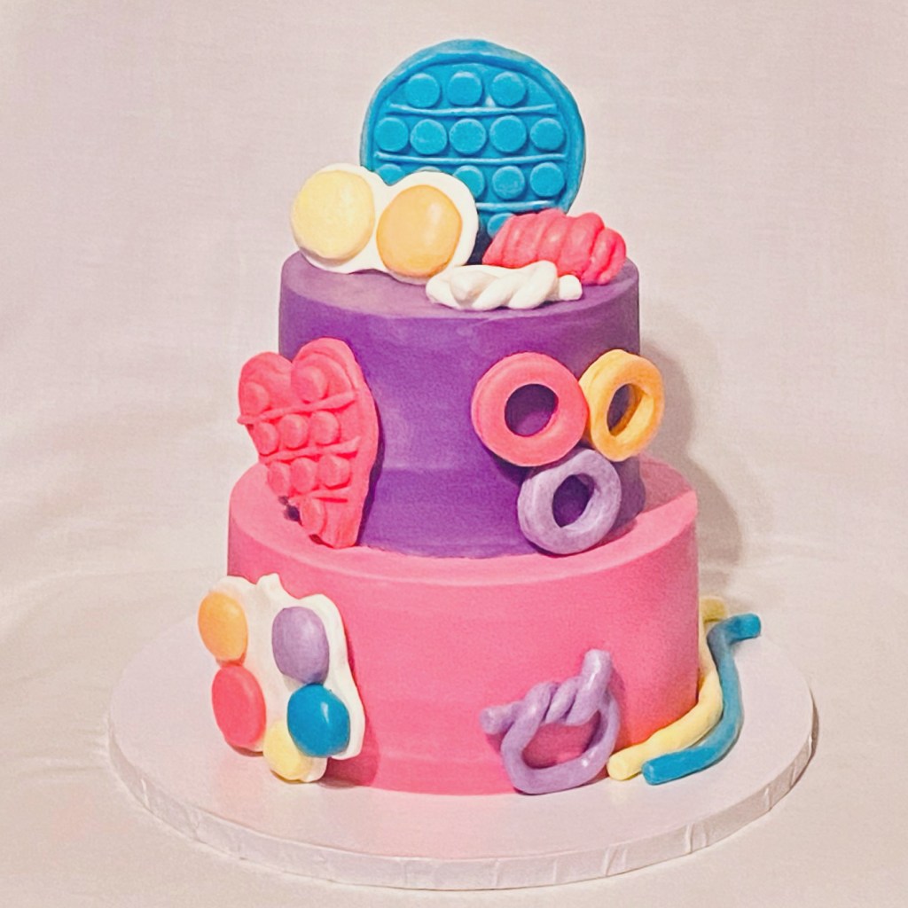 Popping into double digits, Ruthie wanted the coolest trend to adorn her cake. Pop-Its is where it’s at!! Gluten free chocolate and vanilla cakes, with vanilla buttercream and modeling chocolate Pop-Its. Thanks for the opportunity Corinne!! I hope Ruthie and her friends enjoyed her cake! #LikealotCakes #cakerlife #jesslife #popits #glutenfree #modelingchocolate