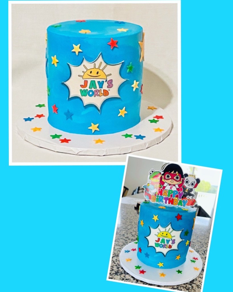 Busy weekend!! Starting off with our little buddy Jay and his 6th birthday cake. 3 layers of vanilla Funfetti cake, vanilla buttercream frosting, custom edible image, and fondant accents. Thanks for the opportunity Christina. We hope Jay loved it! #LikealotCakes #cakerlife #jesslife #jaysworld #ryansworld