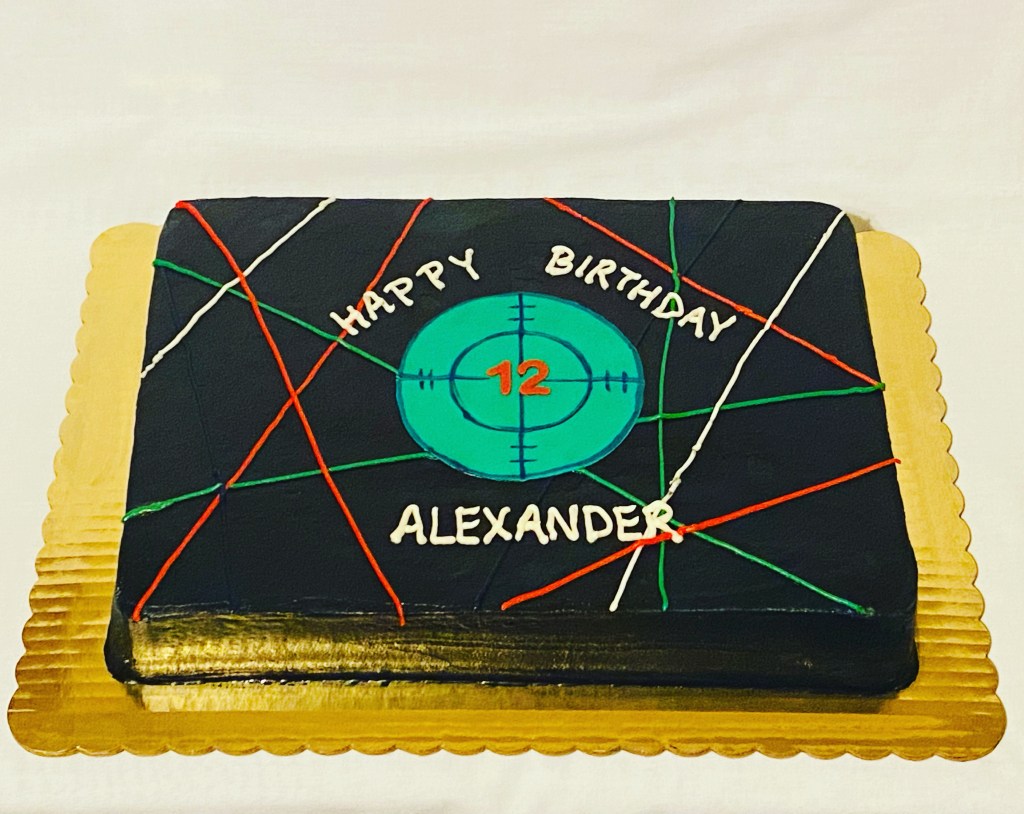 Laser tag party calls for laser tag cake! Yellow cake, vanilla , and fondant target. Thanks for the opportunity Michelle. #LikealotCakes #cakerlife #jesslife #lasertagcake