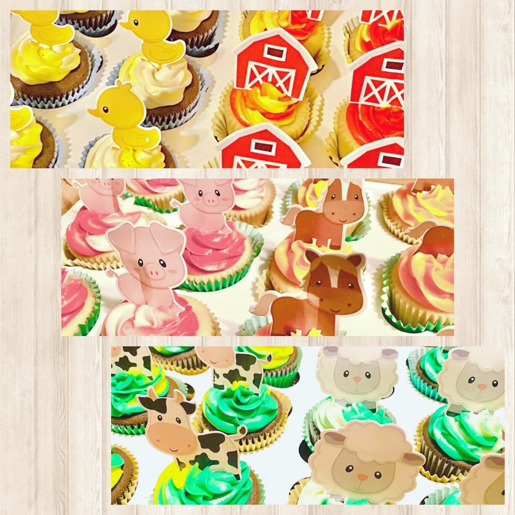 Down on the farm! These adorable cupcakes partied at the horse farm last weekend. Chocolate and vanilla cupcakes with vanilla buttercream and farm fun pick toppers were just right for the occasion. Thanks for the opportunity, Sandy! We hope they were a hit! #LikealotCakes #cakerlife #jesslife #farmcupcakes #downonthefarm