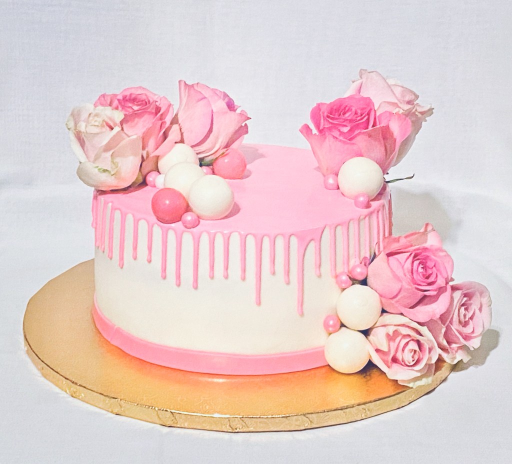 We just love doing pretty pink cakes! This girlie birthday cake was perfect to celebrate Chelsea’s friend! Vanilla cake with vanilla buttercream, chocolate ganache drip, chocolate candies, and fresh roses. Thanks for the opportunity, Chelsea! #LikealotCakes #cakerlife #jesslife #prettycake #pinkcake #ganachedrip #freshroses