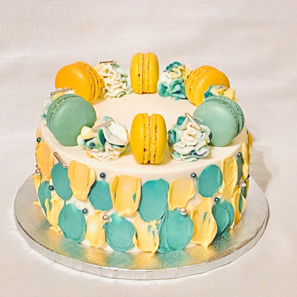 Birthdays are special. Having full design freedom is too. We tried a unique design, topped with a special treat, and the result was the talk of the birthday dinner. Vanilla cake, vanilla buttercream, and assorted macaroons by the amazing @little.lab.bakes. Happy birthday Erin! Hope it was great! #LikealotCakes #cakerlife #jesslife #birthdaycake #macarons #littlelabbakes