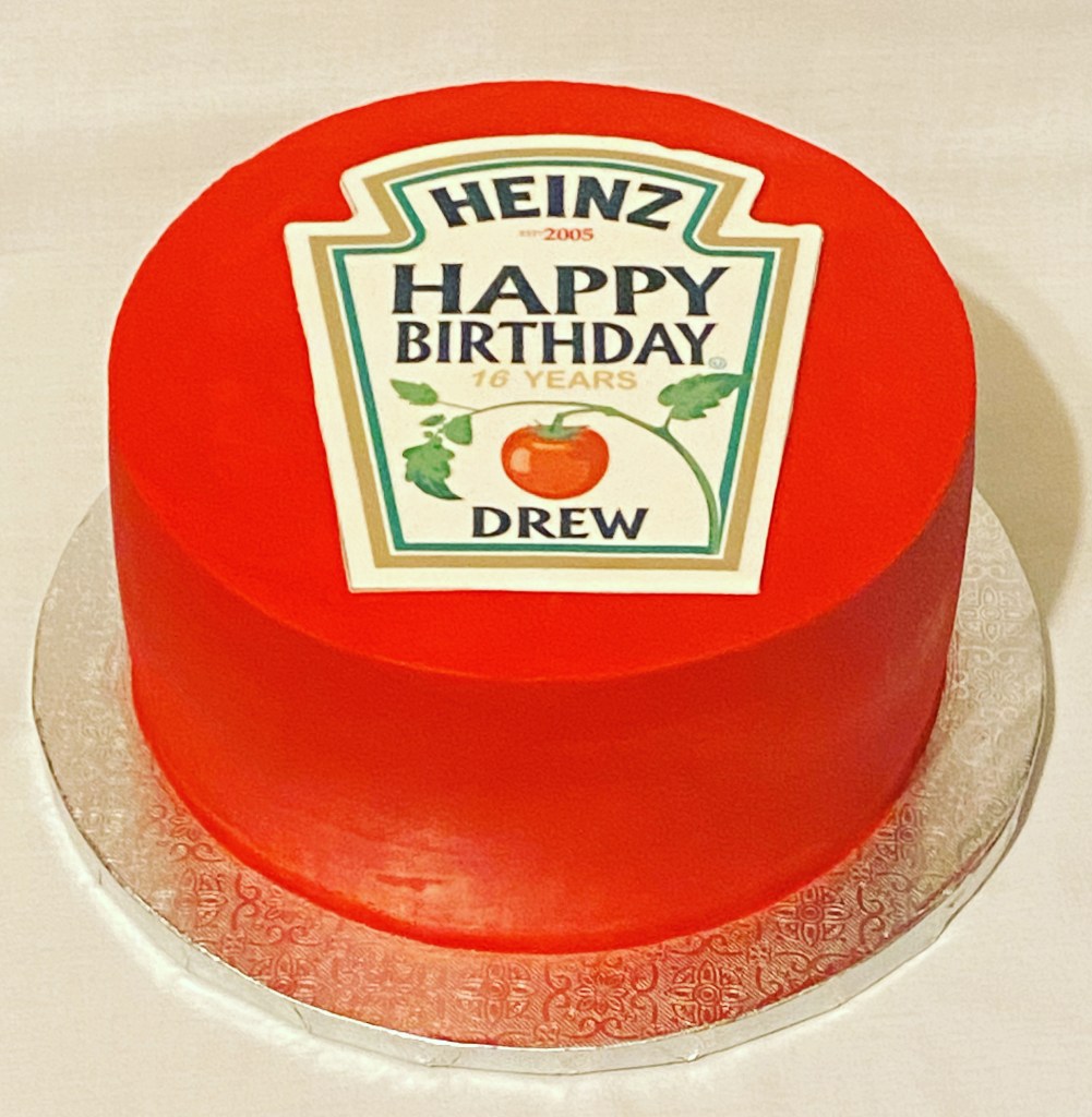 The boy who loves ketchup. Celebrating one of a kind. Happy 16th birthday Drew!! Vanilla funfetti cake with vanilla buttercream and custom edible image. Thanks for the opportunity Valerie and Jason! #LikealotCakes #cakerlife #jesslife #heinzketchup #ketchupcake