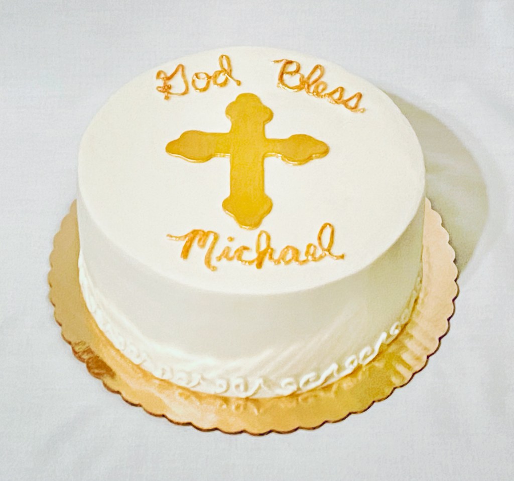 Celebrating Michael’s 1st Communion. Gluten free vanilla cake, with chocolate buttercream filling, vanilla buttercream frosting, and gold luster painted fondant cross. Thanks for the opportunity Corinne! I hope it was enjoyed by all! #LikealotCakes #cakerlife #jesslife #1stcommunion