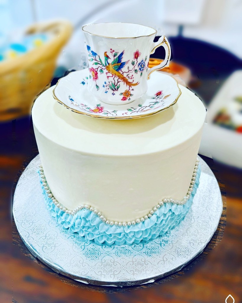After a long 2 year wait (thanks 🦠, 😭) , Shannon was finally able to host her sister’s bridal shower earlier this month. We love the blue ruffles and silver beading, plus your teacup and saucer were the perfect topper! Thanks for the opportunity, Shannon! We appreciate you and we’re happy to have been part of your sister’s special day. #LikealotCakes #cakerlife #jesslife #bridalshower #bridaltea 📸 @mrsament