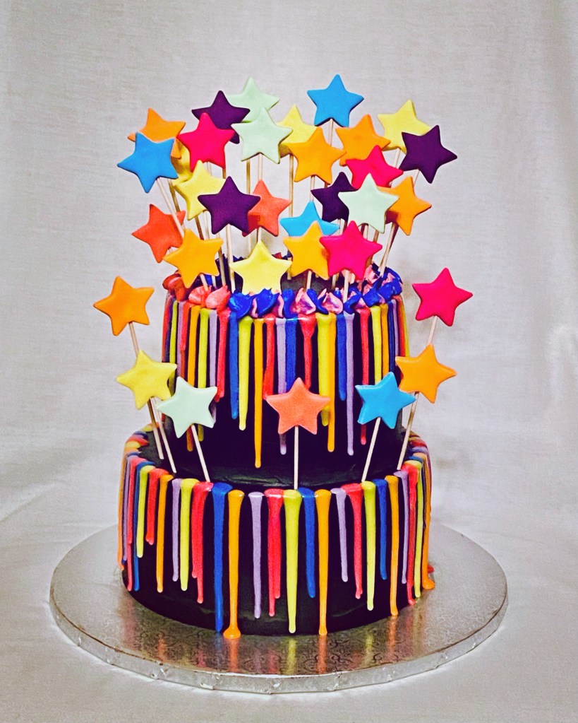 When the cutest 6 year old claims you as ‘her cake lady’, you know you’re doing something right! This cake was so much fun to make. We love the creative cakes we get to make Penelope (last year she requested a chicken cake 🐓). This year was ‘glow in the dark’ themed with almond funfetti cake, ganache drip, and glow fondant stars, and it turned out so cool! Thanks for letting us wow you’re sweet girl, Blair! #LikealotCakes #cakerlife #jesslife #glowinthedark #customcakes #mycakelady