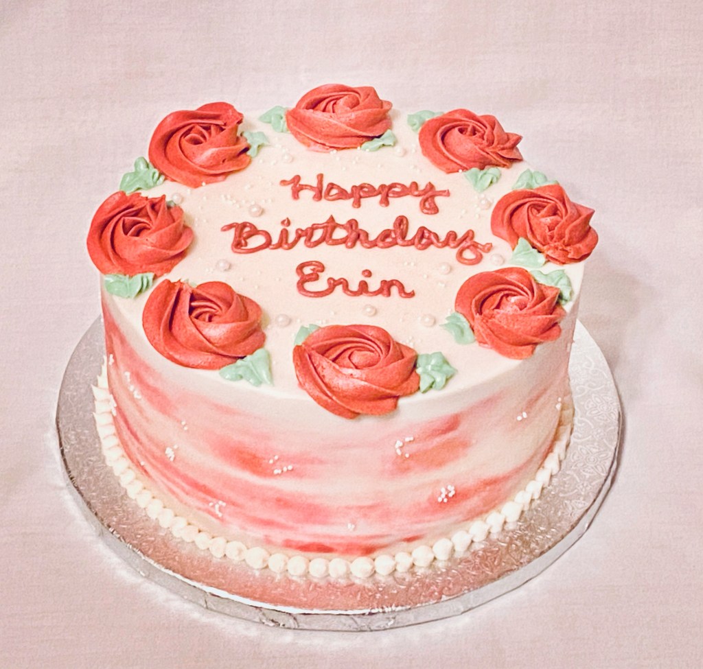 When the one who orders all the cakes for everyone else, gets treated for her birthday, it becomes a truly special day! Emma was sure to order a cake for her mom Erin’s birthday today. Vanilla cake with vanilla buttercream frosting and flowers. Thanks Emma! Happy birthday Erin! #LikealotCakes #cakerlife #jesslife