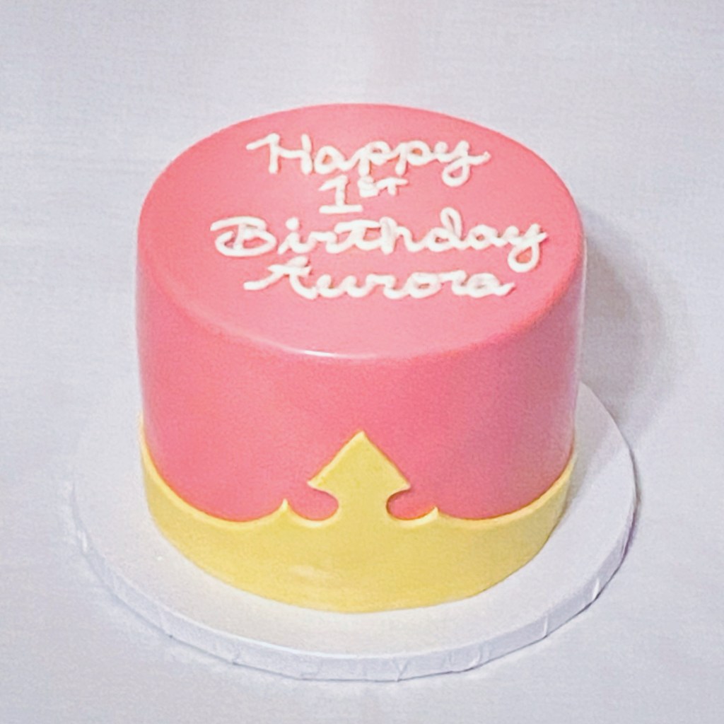 A princess absolutely needs more than one first birthday party! Coming in with cake 2 for sweet Aurora! Yellow cake with strawberry reduction filling and sparkly pink fondant, adorned with a classic yellow crown. Thanks for letting us make your sweet girl’s first birthday special, twice! #LikeLotCakes #cakerlife #jesslife #firstbirthday #aurora