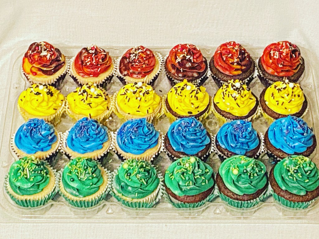 Happy “Hogwarts Houses” birthday to my daughter Isabella. 11 years and she knows exactly what she wants, down to the ‘coordinating sprinkles’. Half chocolate and half vanilla with Hogwarts House inspired vanilla buttercream swirls and matching sprinkles. She shared these with her class today in school. #LikealotCakes #cakerlife #jesslife #hogwartshouses #birthdaycupcakes #thisis11