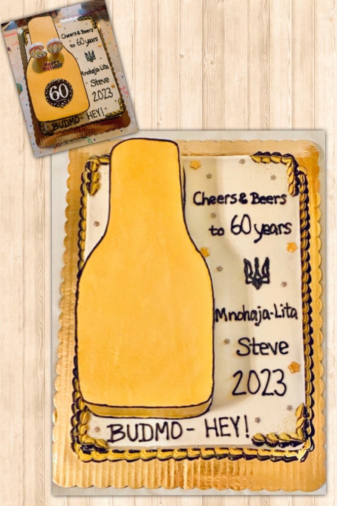 ‘Mnohaja-Lita!’ Many Years, or Happy Birthday, in Ukrainian. This surprise 60th birthday cake for Steve was a hit. His wife Jullie wanted to match the theme with silver, black and gold accents. Vanilla sheet cake, with chocolate cake, shaped in a bottle to represent the honey liquor Medivka. Thanks for the opportunity Jullie! We hope it was a hit! #LikealotCakes #cakerlife #jesslife #Ukrainiancake #60thbirthday