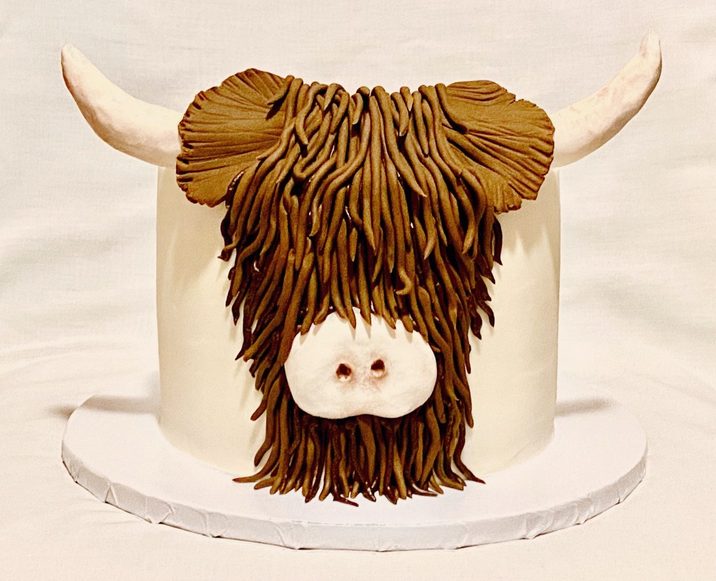 We could not love this sweet Highland Cow cake more!! Celebrating Chastity at her baby shower was this 3-layer marble cake with vanilla buttercream, fondant hair, and modeling chocolate horns and snout. Thanks for the opportunity Beth and congrats to your new grand baby! #LikealotCakes #cakerlife #jesslife #highlandcow #babyshower