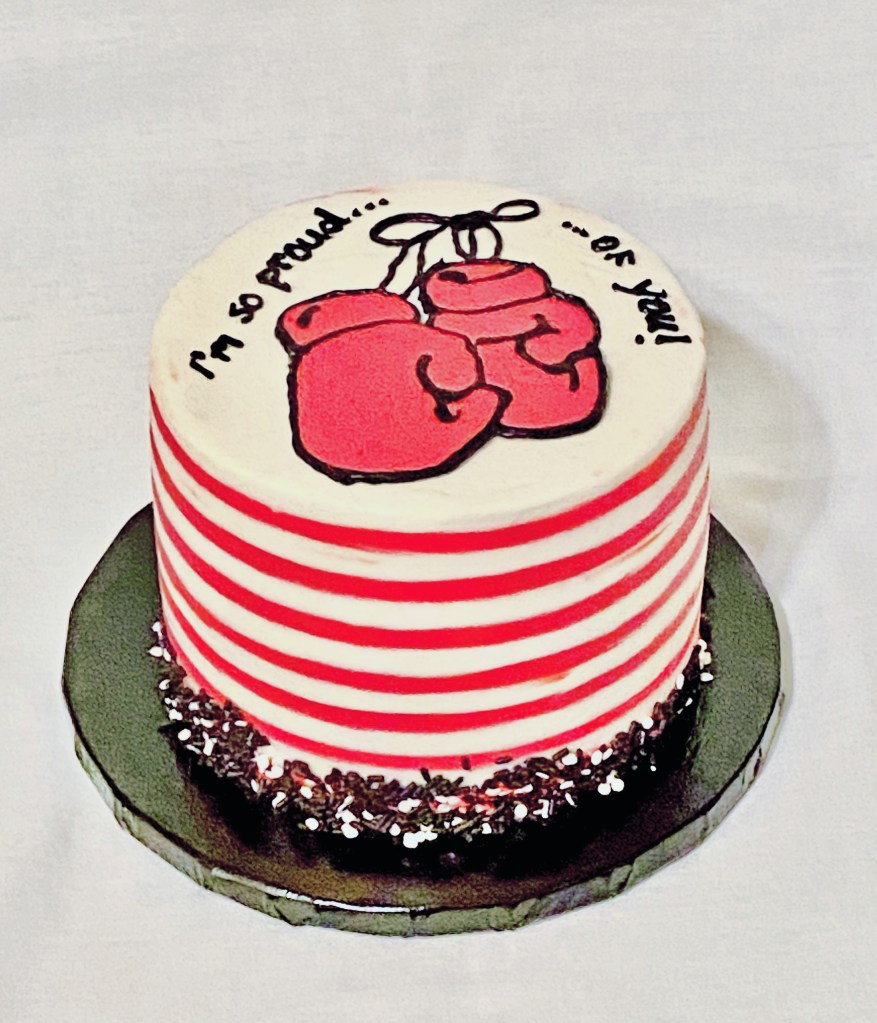 What a fun little cake we did for Emma’s boyfriend to celebrate his kickboxing match on Saturday. Yellow cake with vanilla buttercream. Thanks Emma and Erin for the opportunity! Hope it was enjoyed! #LikealotCakes #cakerlife #jesslife #kickboxing