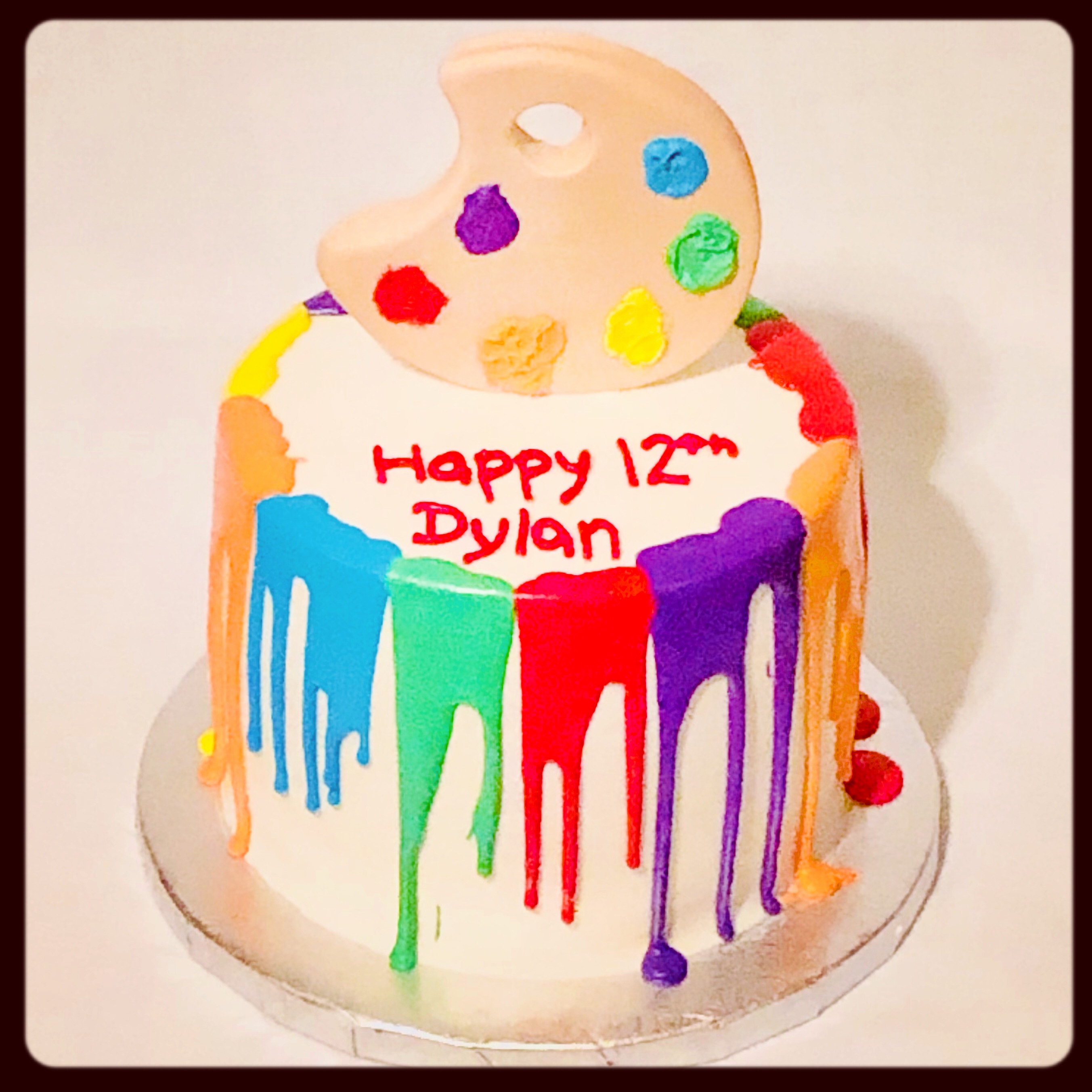 How about a splash of color to celebrate 12 awesome years! Such a fun cake!! Happy birthday Dylan! Chocolate cake with vanilla buttercream, chocolate ganache ‘paint’ drip, and fondant ‘paint’ palette. Thanks for the opportunity Megan and Eric! #LikealotCakes #cakerlife #jesslife #paintcake #chocolatedrip