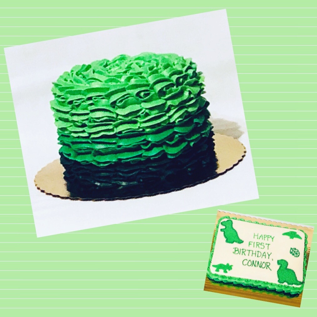 Having a Dino-mite time celebrating Connor’s 1st birthday! Yellow cake with vanilla buttercream for both the ombré smash cake and the dinosaur sheet cake. Thanks for the opportunity, Kathy! #LikealotCakes #cakerlife #jesslife #1stbirthday #dinosaurcake #smashcake #sheetcake #ombrecake