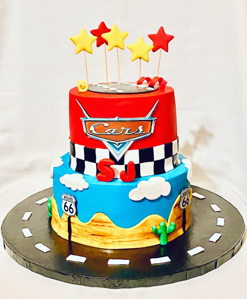 “Kachow!” If you know, you know! This Disney Cars themed cake we did for SJ was a blast to make. Vanilla Funfetti and chocolate cakes with vanilla buttercream and fondant accents. Thanks for the opportunity Ariel! #LikealotCakes #cakerlife #jesslife #Cars #disney #disneycars