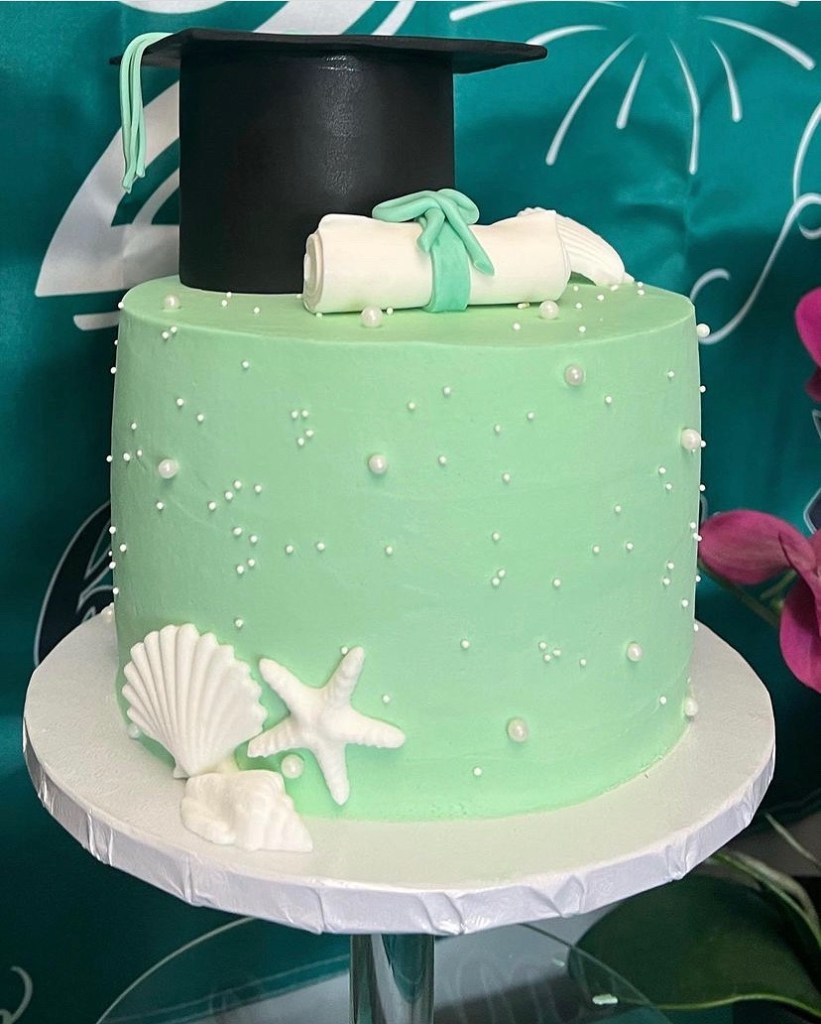 Still running behind on posts! We did this graduation cake a few weeks ago for Corrina’s step daughter. She graduated John Carroll HS and is off to ECU (East Carolina University). The cakes were red velvet (top) and vanilla (middle), with vanilla buttercream and edible image school logos. The soccer ball top was Rice Krispie treats, covered in fondant. Cupcakes were chocolate with vanilla buttercream. Thanks for the opportunity, Corrina. We hope they were all a hit! #LikealotCakes #cakerlife #jesslife #graduationcake ##johncarrollgrad #ECU
