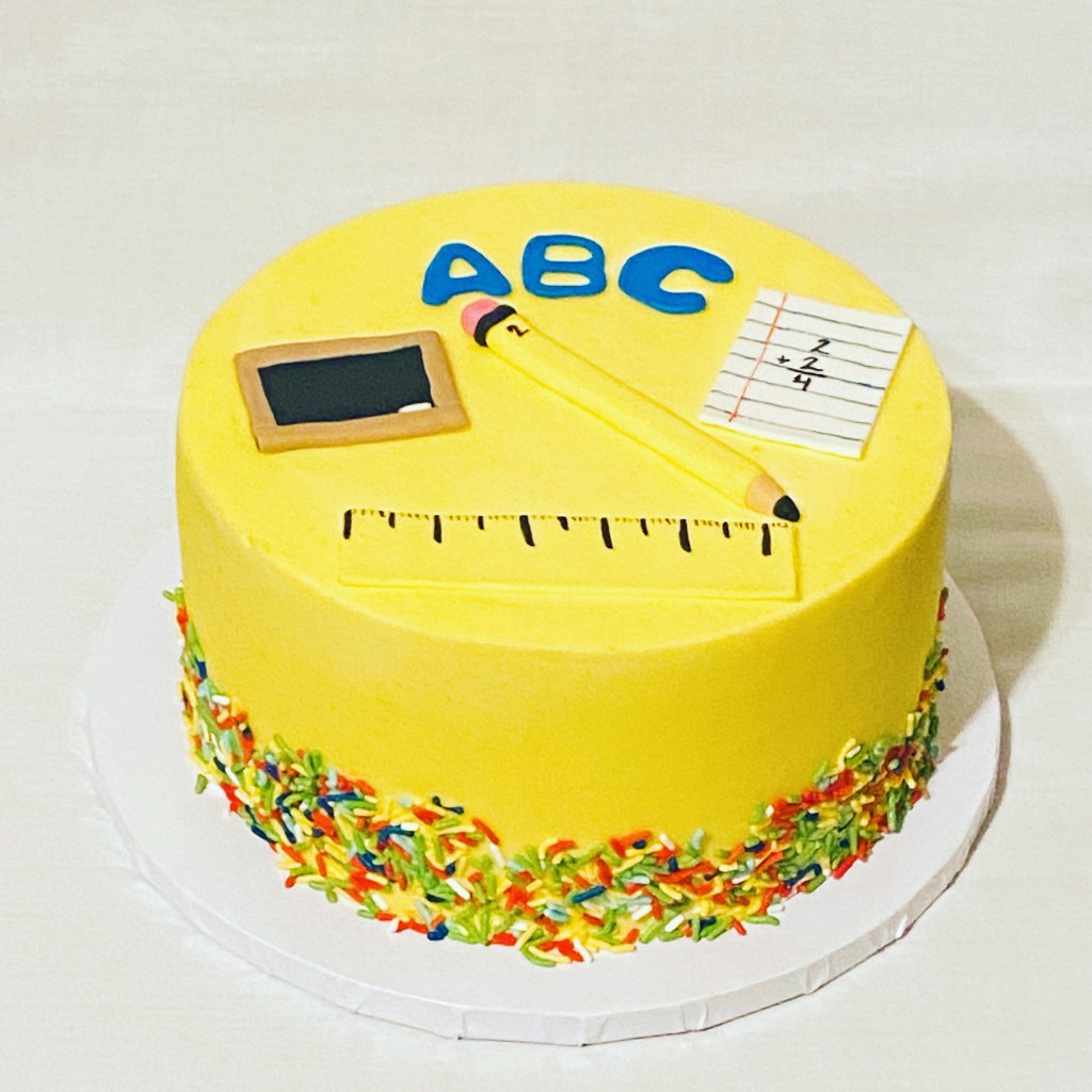 Back to School!! Celebrating Labor Day Weekend with cake! Lemon cake with lemon buttercream and fondant accents. Thanks for the opportunity, Angela! #LikealotCakes #cakerlife #jesslife #backtoschool #labordayweekend #lemoncake #lemonbuttercream