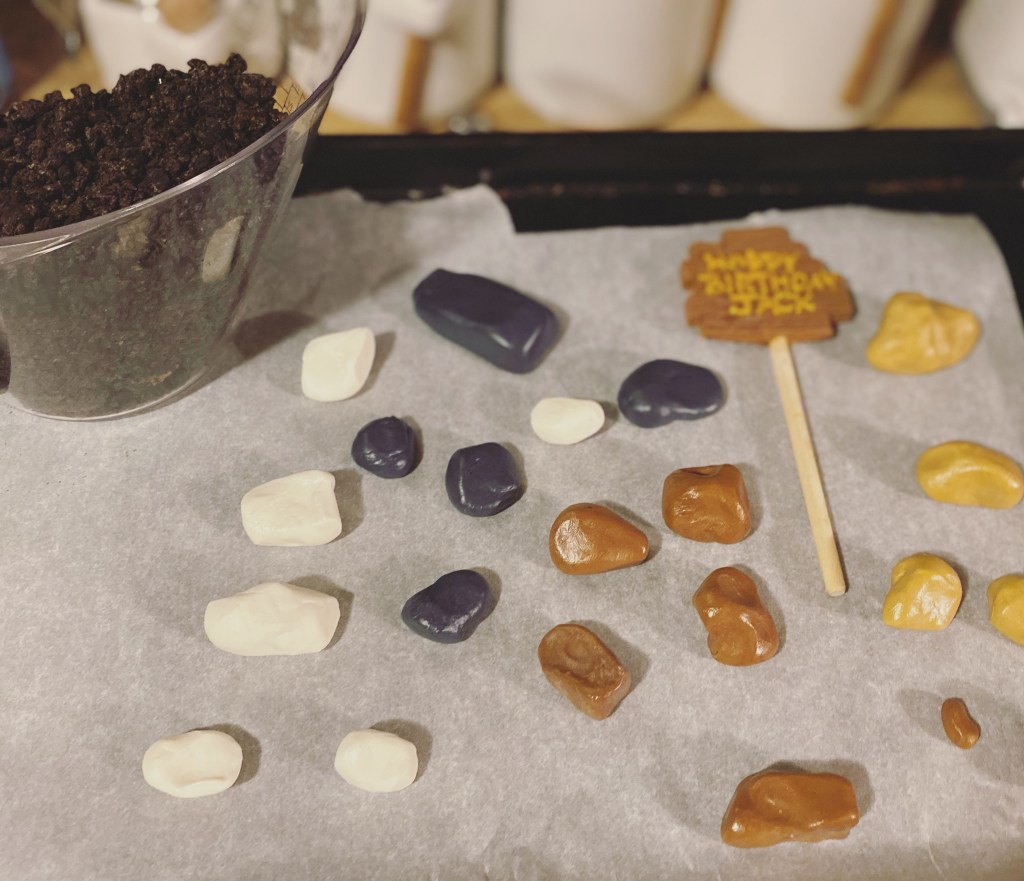 Oh you know. Just another Friday night… making dirt and rocks out of chocolate. #LikealotCakes #cakerlife #jesslife #sneakpeek #fridaynightfun
